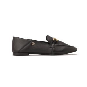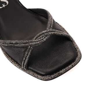 Mule em Couro Preto com Detalhe de Bridão Dourado