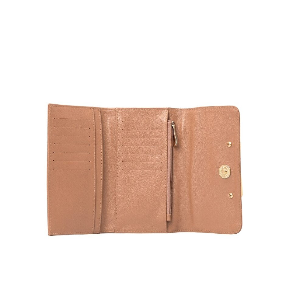 Confeccionada em couro, esta carteira une praticidade e design atemporal. O novo metal CS na parte frontal valoriza a peça com um detalhe marcante e exclusivo. No interior, divisórias bem planejadas para cédulas e cartões, além de bolso interno com zíper para moedas, garantem organização e segurança no uso diário. Um acessório versátil e indispensável para acompanhar diferentes momentos da rotina.