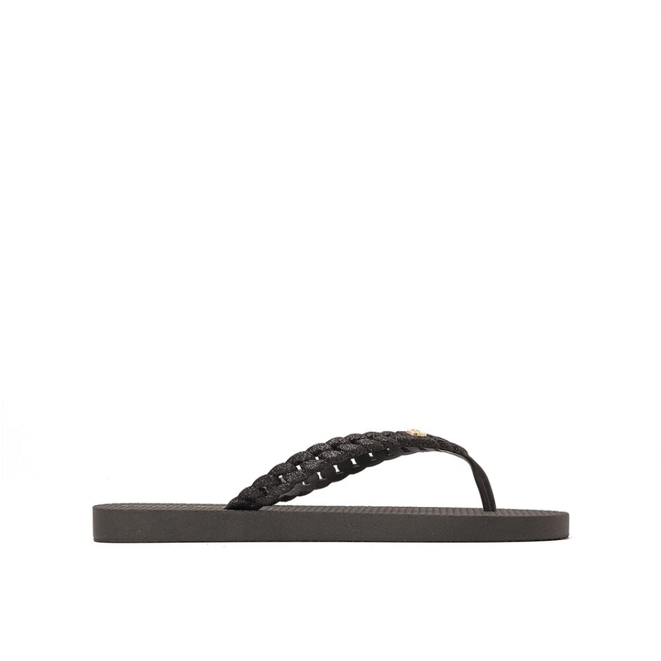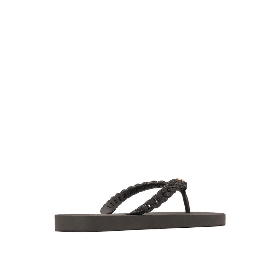 Chinelo com Correntes e Glitter Preto
