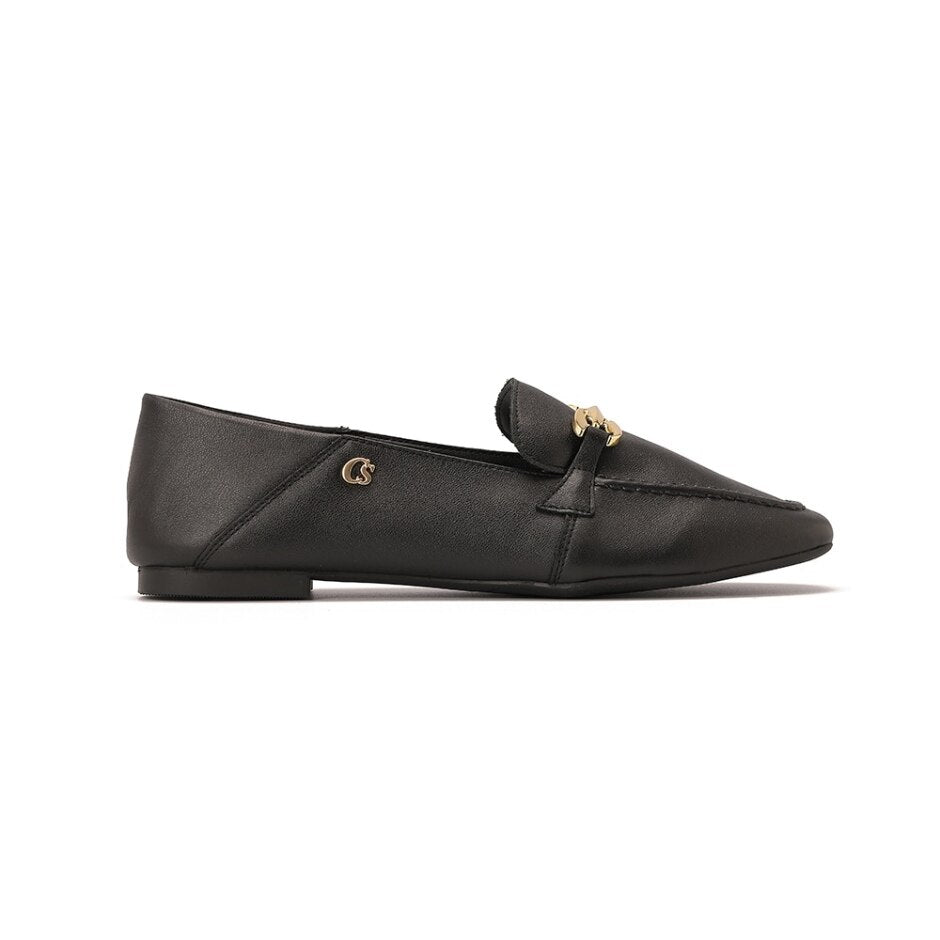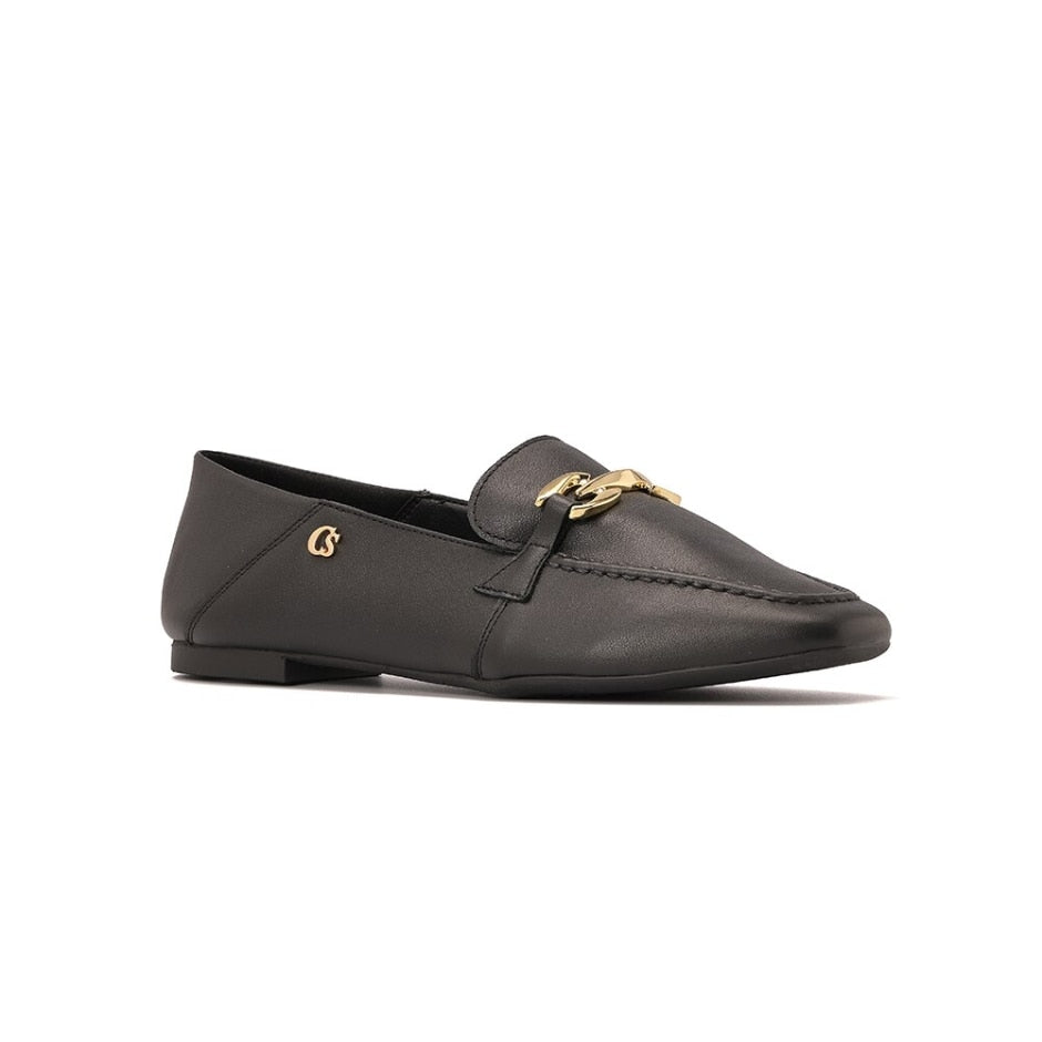 Mocassim Mule Preto em Couro com Detalhe de Bridão
