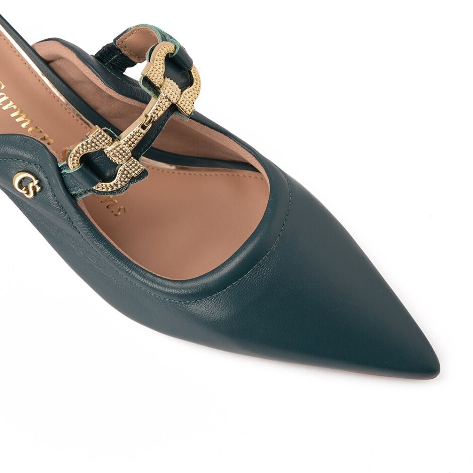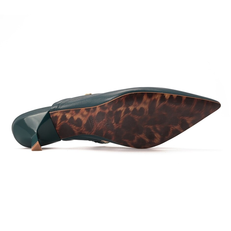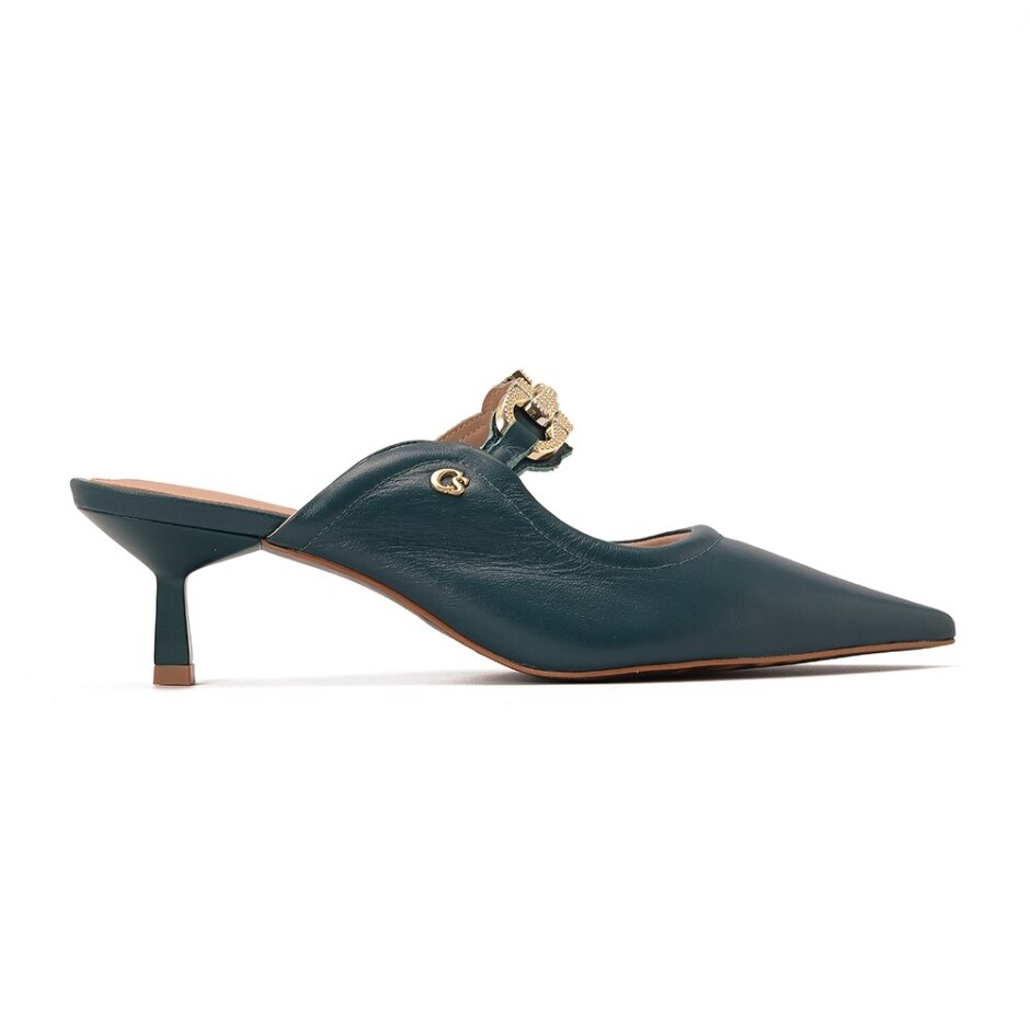 Mule em Couro Verde com Detalhe de Bridão Dourado