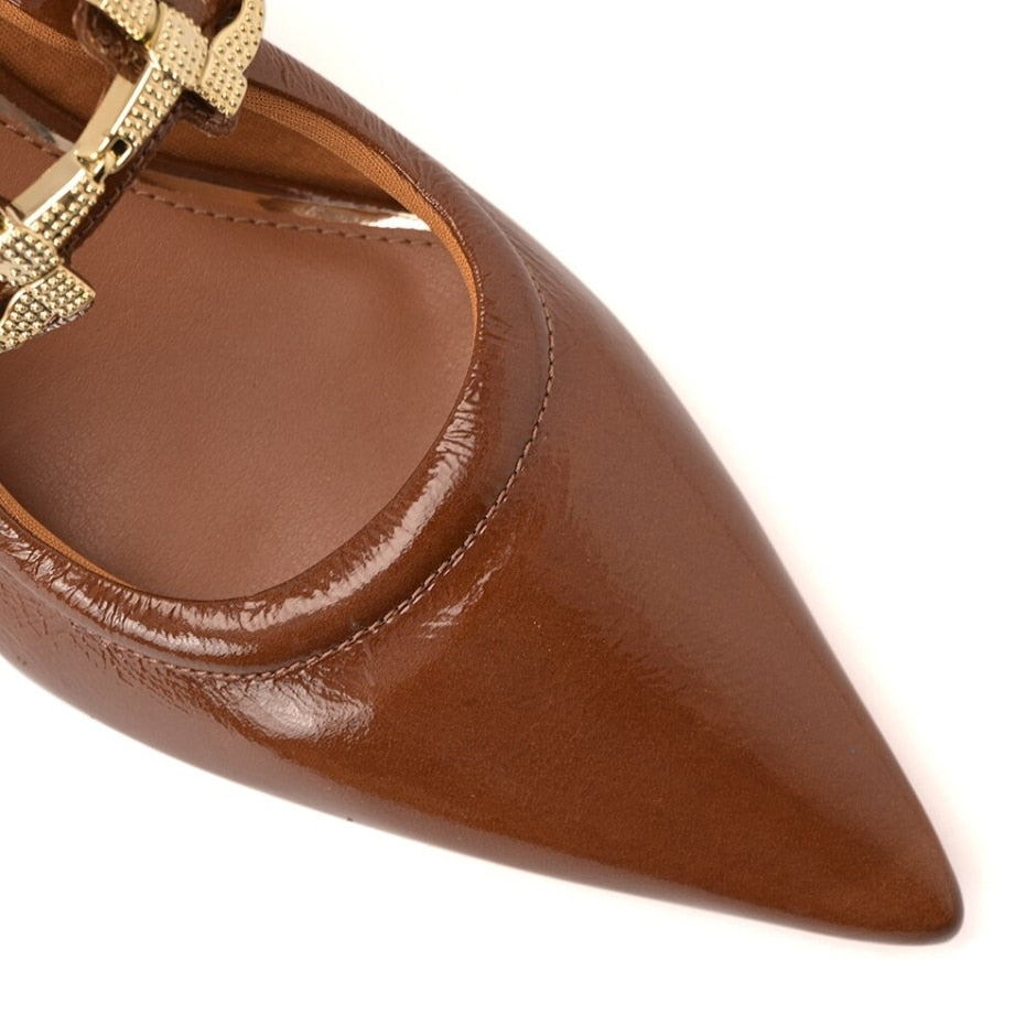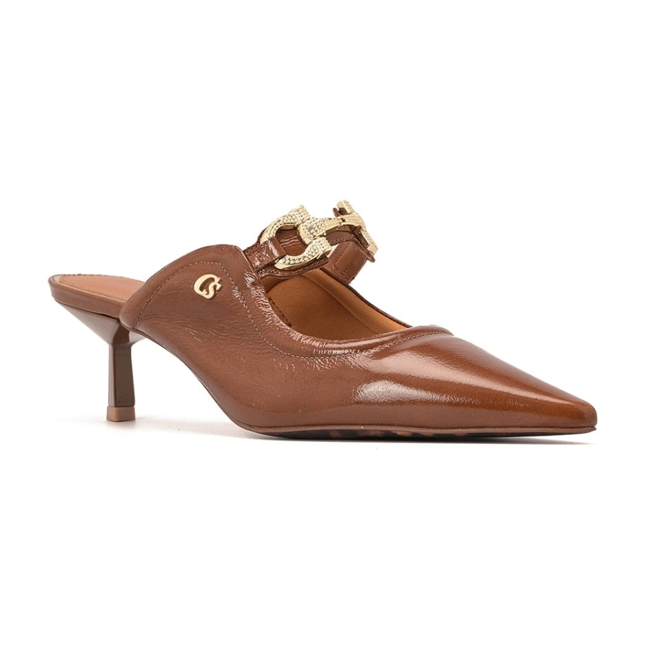 Mule em couro com detalhe de bridão dourado: Elegância e Versatilidade Confeccionado em couro legítimo, este mule combina sofisticação e conforto, sendo perfeito para compor produções elegantes e modernas. O modelo se destaca pela aplicação de bridão com banho ouro, que adiciona um toque de requinte e exclusividade ao design. Versátil, esse mule é ideal para ocasiões casuais ou formais, sendo uma peça indispensável para quem busca praticidade sem abrir mão do estilo refinado.