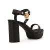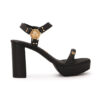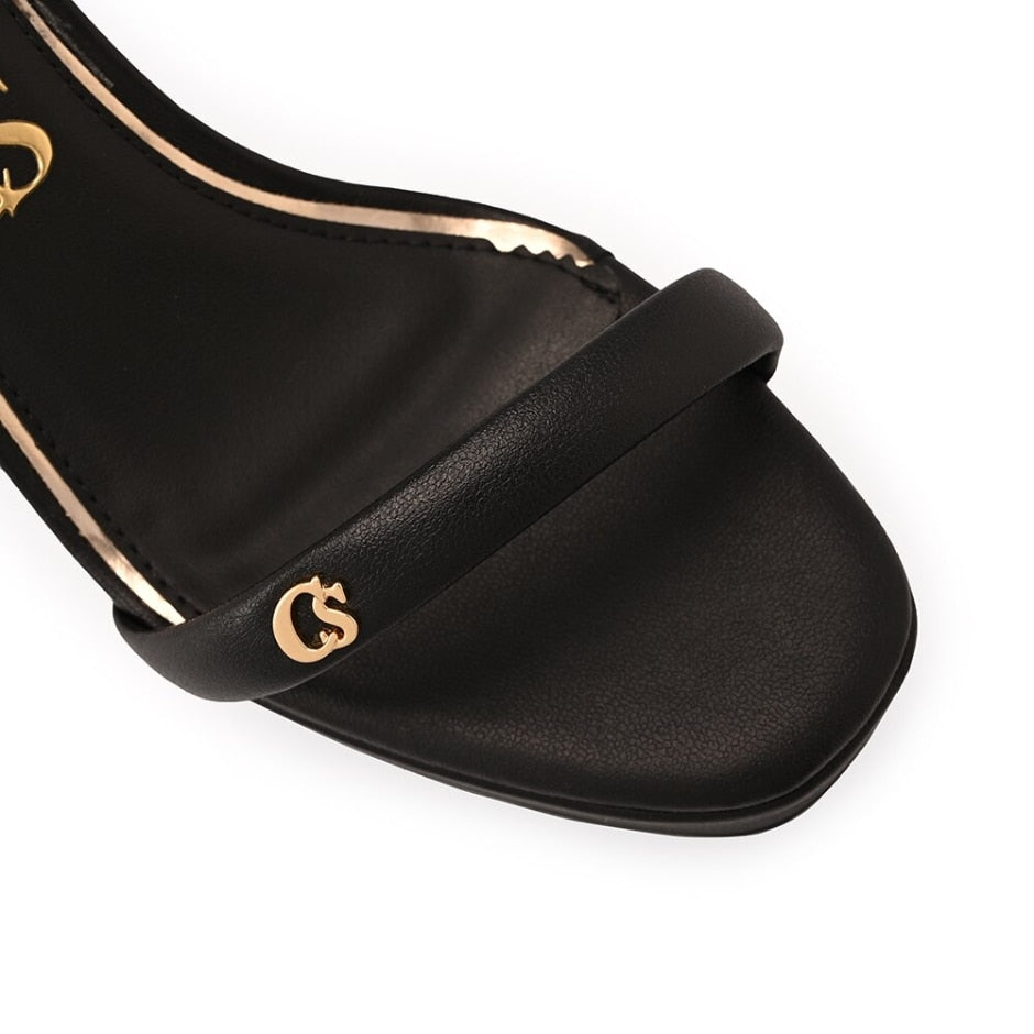 Sandália plataforma confeccionada em couro legítimo na cor preta. O modelo conta com tiras com metais personalizados CS e detalhe de fecho com velcro.