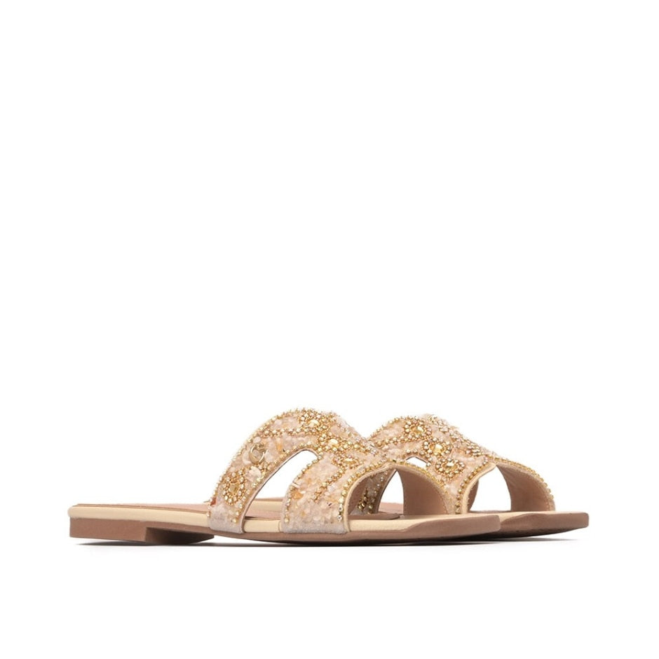 Uma de nossas charmosas rasteiras de verão, feita em couro de alta qualidade para garantir conforto e durabilidade. Seu destaque fica por conta do bordado artesanal feito à mão, que confere um toque único e delicado à peça. Perfeita para os dias ensolarados, ela une estilo, praticidade e um toque artesanal especial, deixando seus looks de verão ainda mais incríveis. Uma escolha perfeita para quem busca elegância e conforto em uma peça leve e cheia de personalidade.