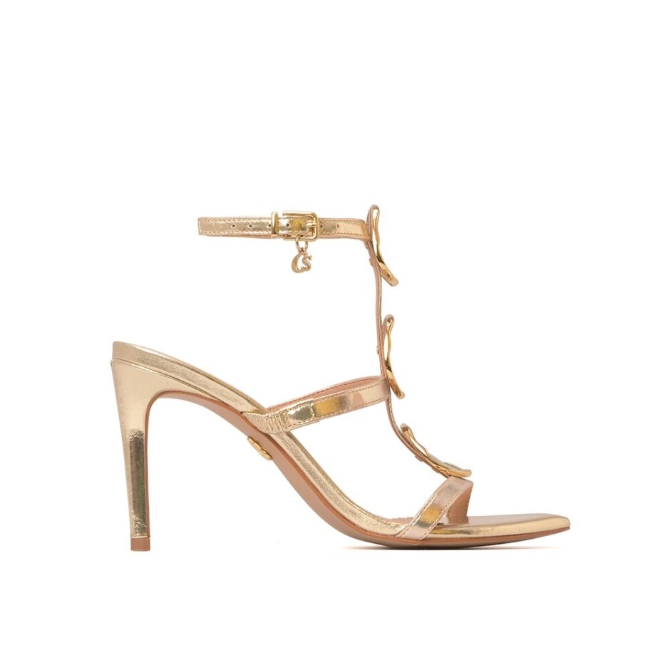 Belíssima sandália em couro legítimo, perfeita para quem busca um visual elegante e único. Com bico em formato de folha e salto fino que valoriza a silhueta, traz um toque de modernidade e sofisticação. A peça é adornada com metal personalizado cs em sua sola e fivela, e suntuosos metais orgânicos no peito do pé, que possuem aplicação de resina perolizada, conferindo um acabamento sofisticado e exclusivo. Para maior praticidade e conforto, possui elásticos ajustáveis em suas tiras laterais, que se adaptam a diferentes tipos de pés. Uma escolha ideal para quem deseja unir estilo e exclusividade em qualquer ocasião.