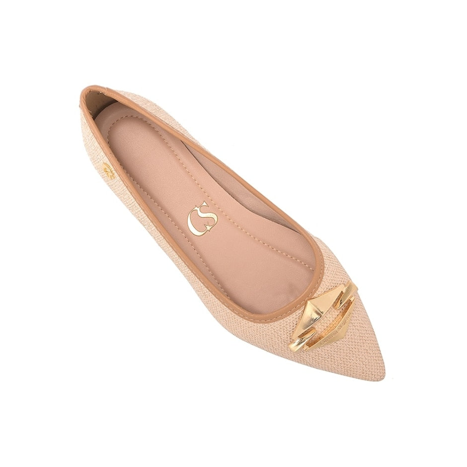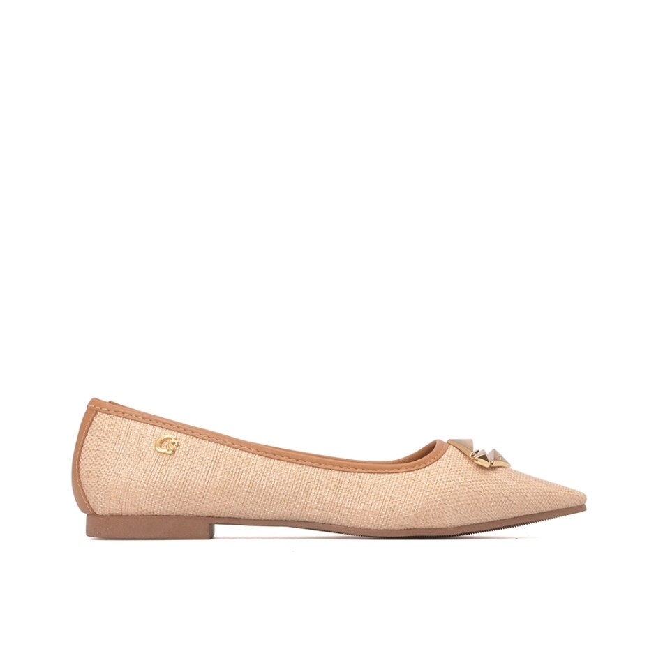 Modelo de sapatilha encantador que combina estilo e conforto. Apresenta uma aplicação de metal com personalização da marca em um elegante banho de ouro escovado, que adiciona um toque sofisticado ao design. Confeccionada em material palha natural, essa sapatilha é perfeita para os dias quentes do verão, garantindo leveza e autenticidade. Conta com um forro acolchoado, proporcionando um conforto extra para os pés. Sua versatilidade permite que você a use em diversas ocasiões, desde passeios informais até eventos mais descontraídos. Uma escolha ideal para quem busca elegância e praticidade!