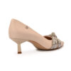 Scarpin de bico fino alongado confeccionado em couro legítimo na cor marfim. Com salto estilo kitten heels, o modelo conta com um laço estilizado com bordado de cristais cabedal.
