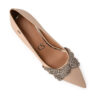 Atemporal, este scarpin une o conforto do kitten heels com a sofisticação do bordado de cristais. Perfeito para compor looks clássicos para ocasiões que pedem um toque de requinte.