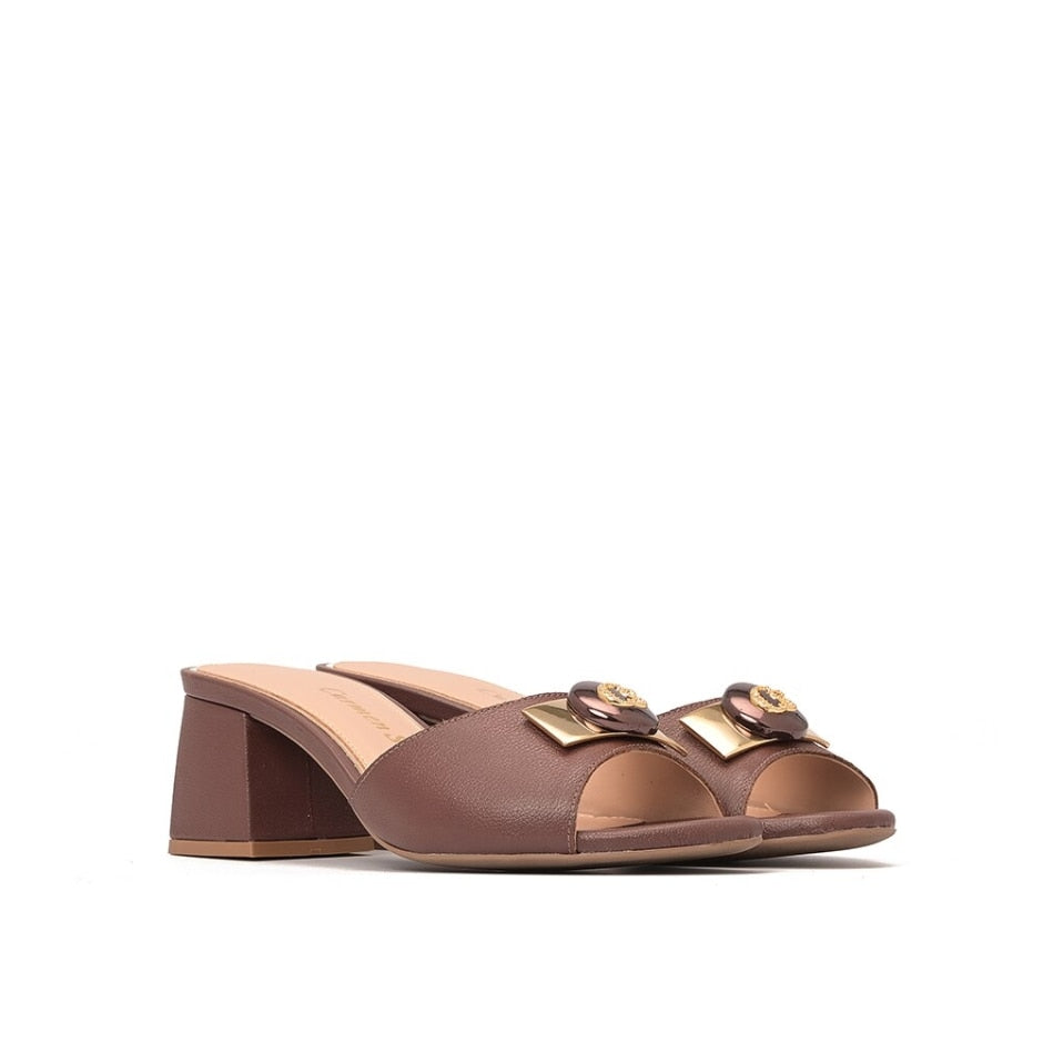 Esse tamanco une praticidade e elegância em um design versátil. Com frente arredondada e salto bloco de altura média, garante conforto e estabilidade em cada passo. Ideal para composições casuais sofisticadas, o modelo se destaca pelo metal personalizado exclusivo, que adiciona um toque de modernidade e estilo único. Perfeito para quem busca aliar bem-estar e sofisticação no dia a dia.
